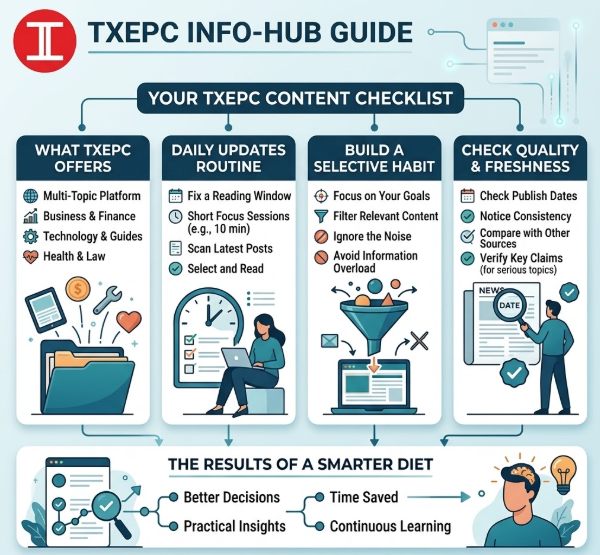 If you want to stay always updated with txepc site, the best strategy is simple. Understand what the platform offers, visit it on a fixed schedule, focus on the categories that matter to you, and read with a critical eye. Publicly available pages suggest that TXEPC aims to be a broad information platform with fresh, accessible content across technology, business, finance, health, and practical guides.